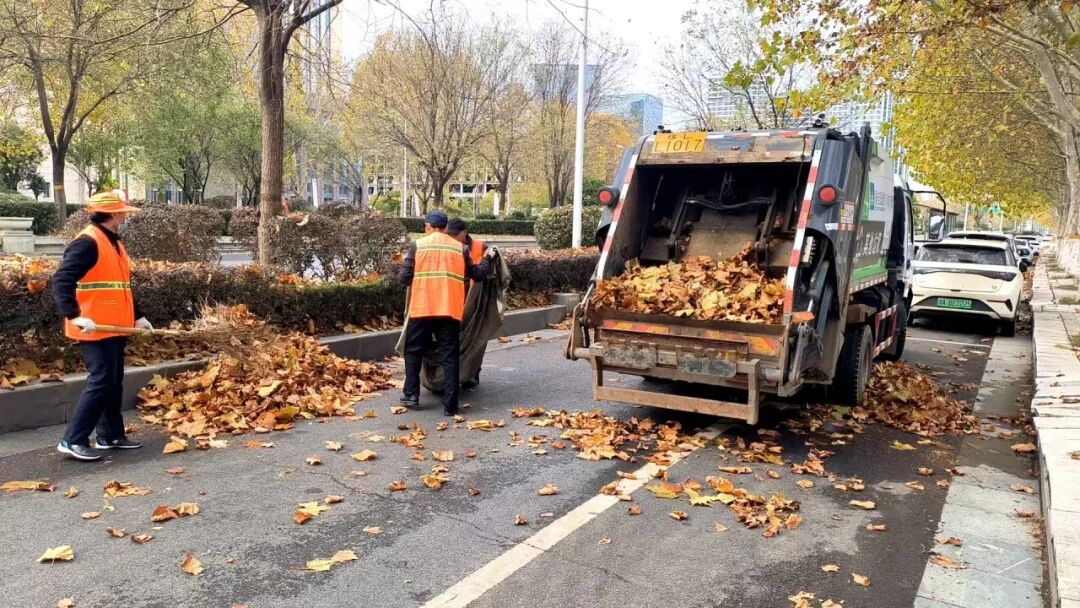 清掃車集中作業 二是突出重點,攻克衛生頑疾。對長期存在的衛生死角、積存垃圾、亂貼亂畫等現象進行集中排查和徹底清理。出動高壓沖洗車、洗掃車等大型專業設備,對路面、路緣石、交通護欄等進行深度沖洗,還原城市本色。同時,加強垃圾收集、轉運環節的管理,確保垃圾日產日清,車走地凈。 三是強化管理,確保常態長效。在完成集中清理任務的同時,神州環境注重建立長效機制,通過劃分責任網格、明確崗位職責、加強質量考核等方式,鞏固和提升清潔成果,防止問題回潮,致力于讓西城區的潔凈面貌得以持續保持。 人車協同清掃落葉 “潔盡所能,扮靚西城”不只是一句口號,更是神州環境對城市和市民的莊嚴承諾與實際行動。下一步,神州環境將繼續立足精細化管理,以行動和服務助力城市環境建設。